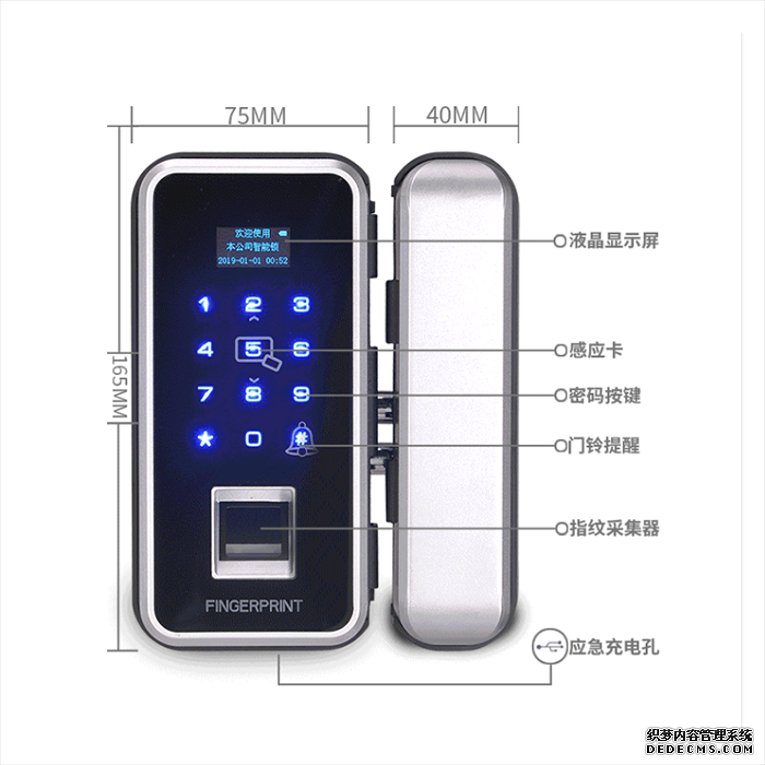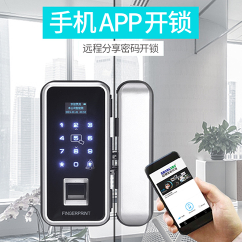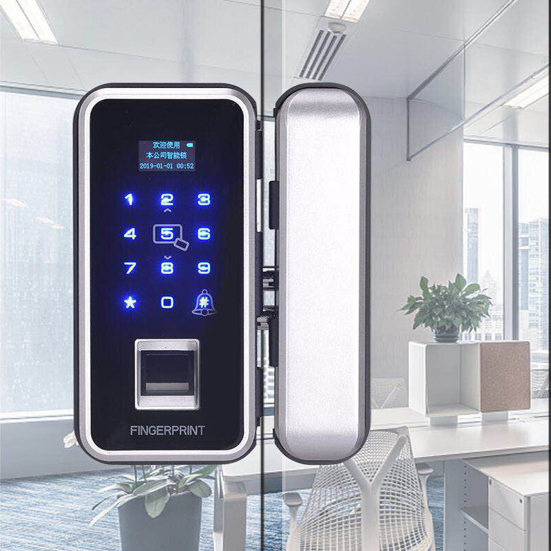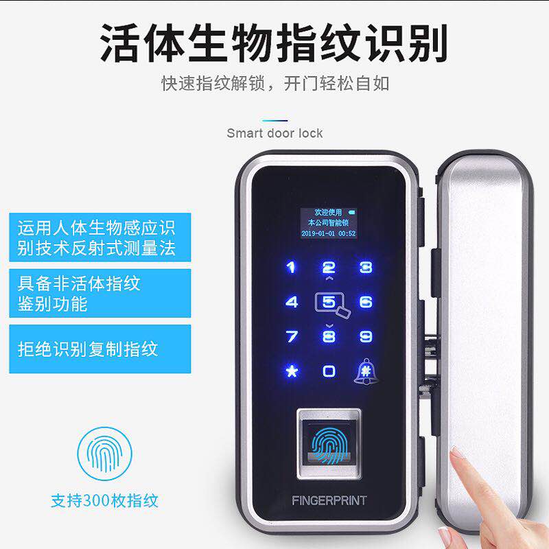 办公室玻璃门智能指纹锁,免开孔布线玻璃门指纹密码锁