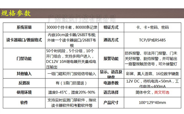 业化配置,能够提供高级准确准保设备实现自动化和现代化的出入门禁保安/考勤监控专业