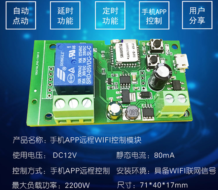 产品名称:手机APP远程WIFI控制模块