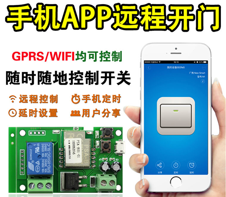 手机APP遥控开门-模块远程开门-WiFi继电器无线开关-可点动自动控制、GPRS/WIFI均可控制  随时随地控制开关、扶持远程遥控、手机设置常开、点动限时开、用户分享