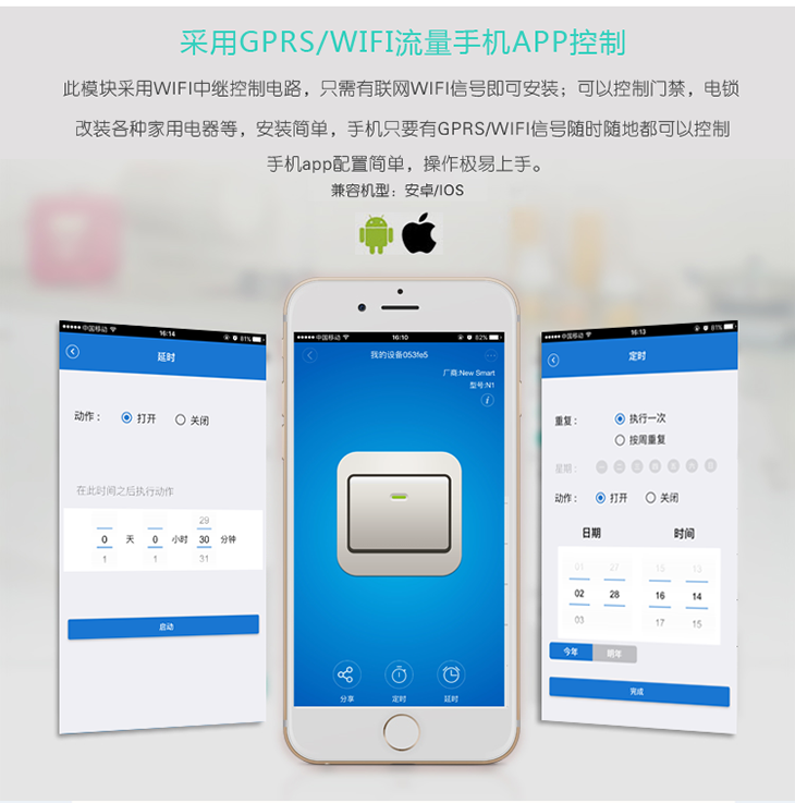 采用GPRS/WIFI流量手机APP控制