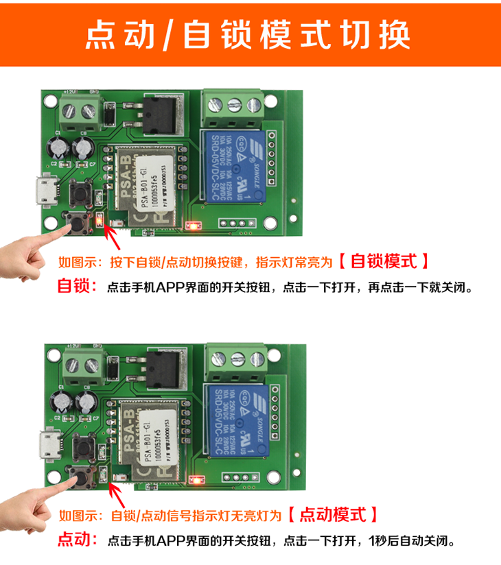 手机APP遥控开门-模块远程开门-WiFi继电器无线开关-可点动自动控制