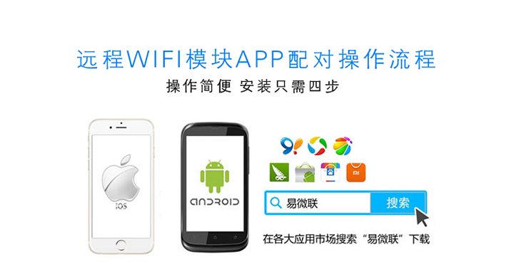 种家用电器等,安装简单,手机只要有GPRS/WIFI信号随时随地都可以控制手机app配置简单,操作极易手。