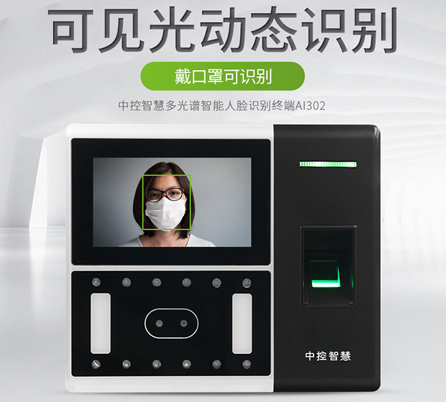 AI 302是中控智慧根据市场需求,全新推出的多光谱智能人脸识别终端,区别于以往的人脸静态识别,具有快速读取、动态识别、活体检测等功能。AI 302具有指纹、人脸等多种验证方式,签到打卡多种选择,轻松考勤。多种通讯方式搭配,保证无缝连接网络,适应多种环境需求。标配简单门禁,具有门磁、报警等多种功能,守护工作环境安全,是您时间安全管理的全新选择。