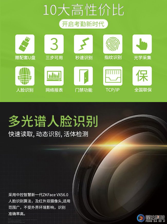 采用中控智慧新一代ZKFACE7.0人脸识别算法,及红外双摄像头,适用范围广,不受外界环境影响,识别准确率高。