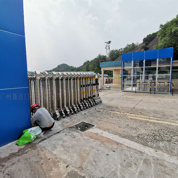 自动门申缩门安装维修-广州LNG液化气储气库大门为方便对进出车辆进行管控,选择了篷达门禁安装不锈钢自动门申缩门。