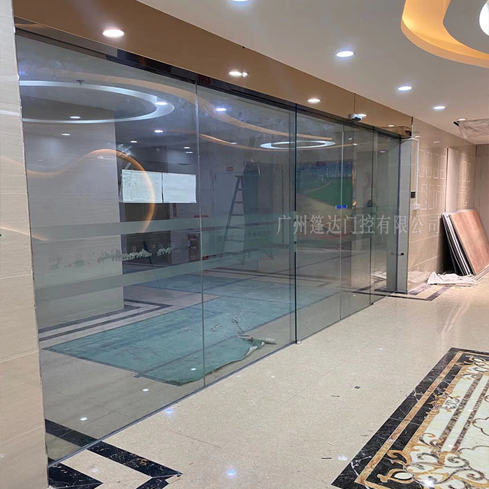 自动感应门安装指纹门禁,具有门禁管制和考勤一体功能,支持前台一键遥控开门。