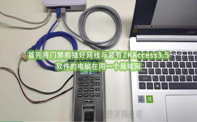 因此首先我们需要将门禁一体机安装好并通电,将门禁一体机的网线插入与装有ZKAccess3.5软件电脑的同一局域网中,保证二者网络环境相同;