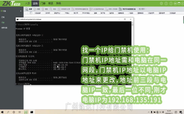 (注意:预设门禁机IP以电脑IP为准,门禁机IP前三位与电脑IP一致最后一位不同)