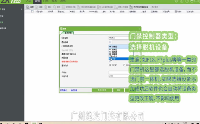 门禁控制器类型:选择脱机设备(注意:如F18、F7plus等等一类的门禁机这里都选脱机设备,而不选门禁一体机,如果选错设备添加成功后软件也会自动将设备类型更改正确,不影响使用);