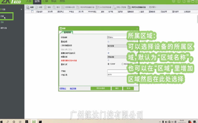 所属区域:可以选择设备的所属区域,默认为“区域名称”,也可以在“区域”里增加区域然后在此处选择;
